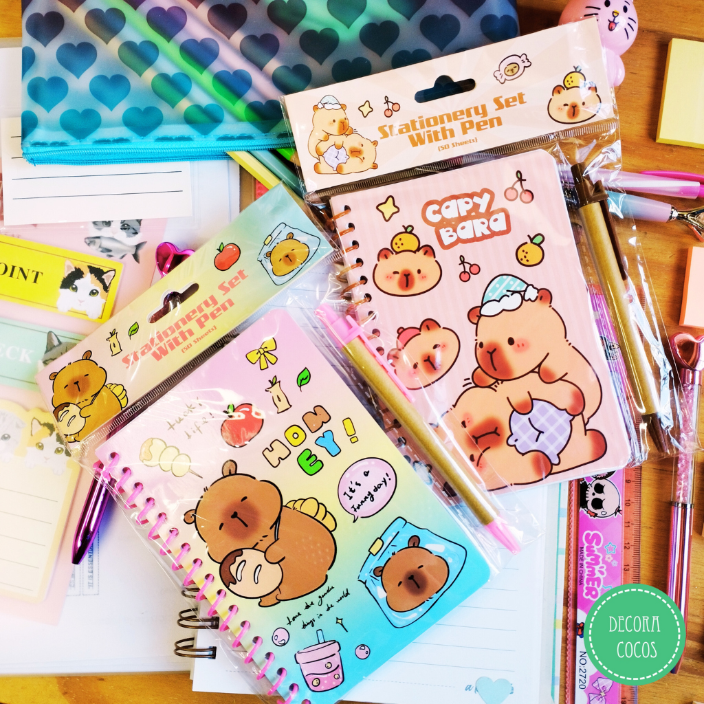 Libreta Capibara + bolígrafo Anillado plástico - 50h rayadas con diseños Medidas: 15 x 11 cm Precio por unidad - Se envía surtido según stock