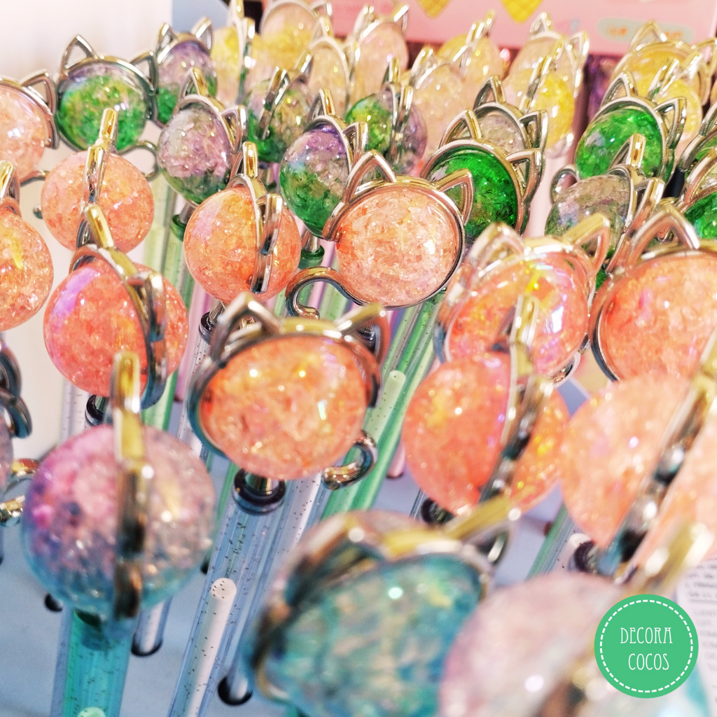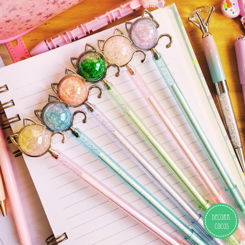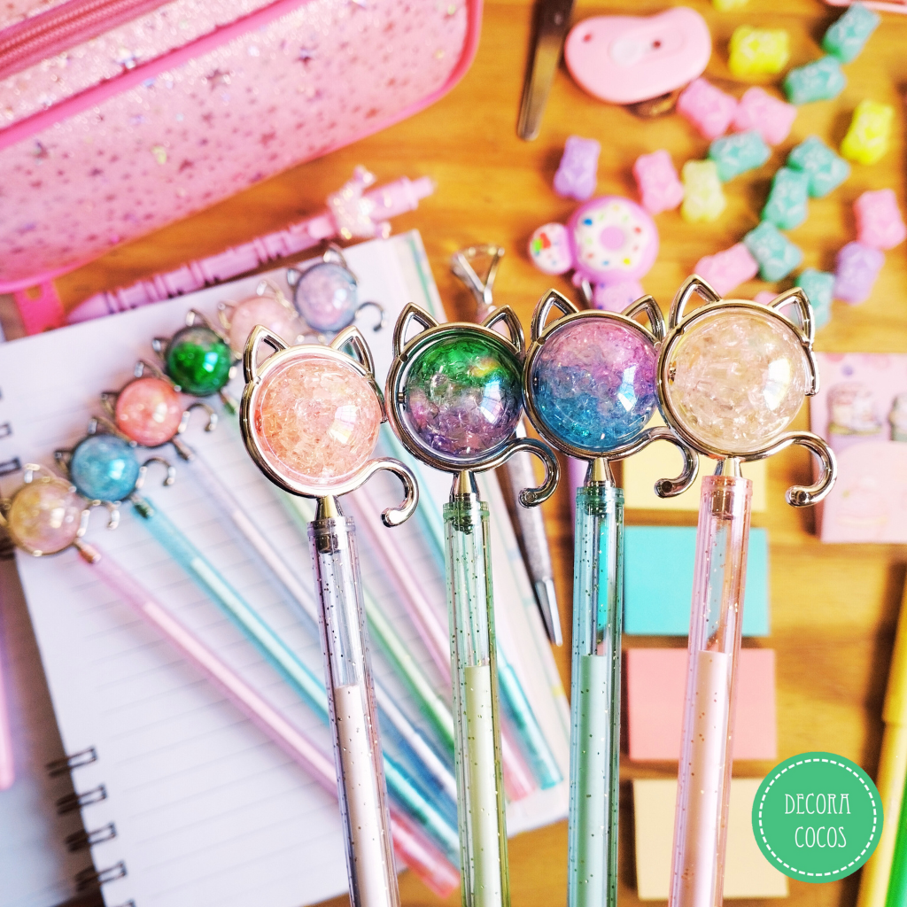 Bolígrafo Gatito Cristal La bolita gira y el cuerpo del bolígrafo tiene glitter Punta 0.5mm tinta azul - punta metal trazo fino simil microfibra Precio por unidad - Se envía surtido de colores
