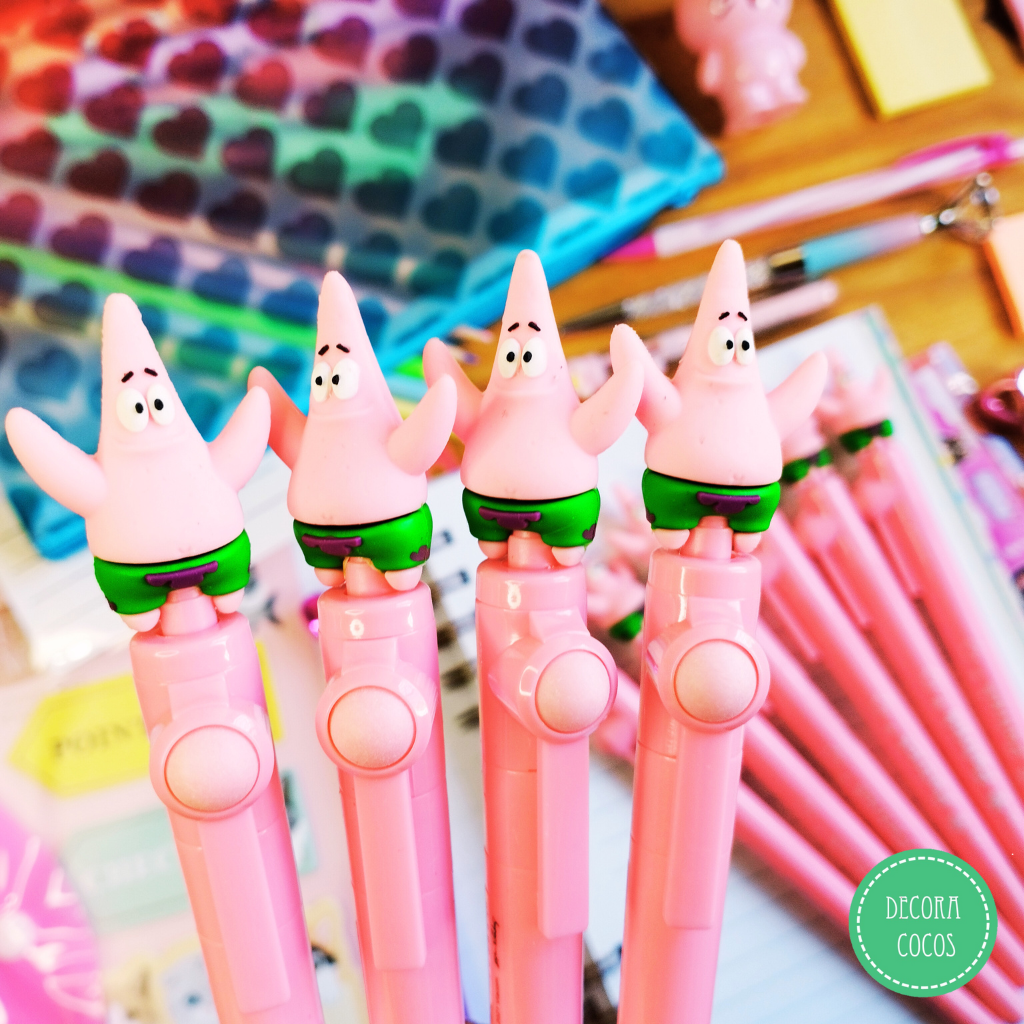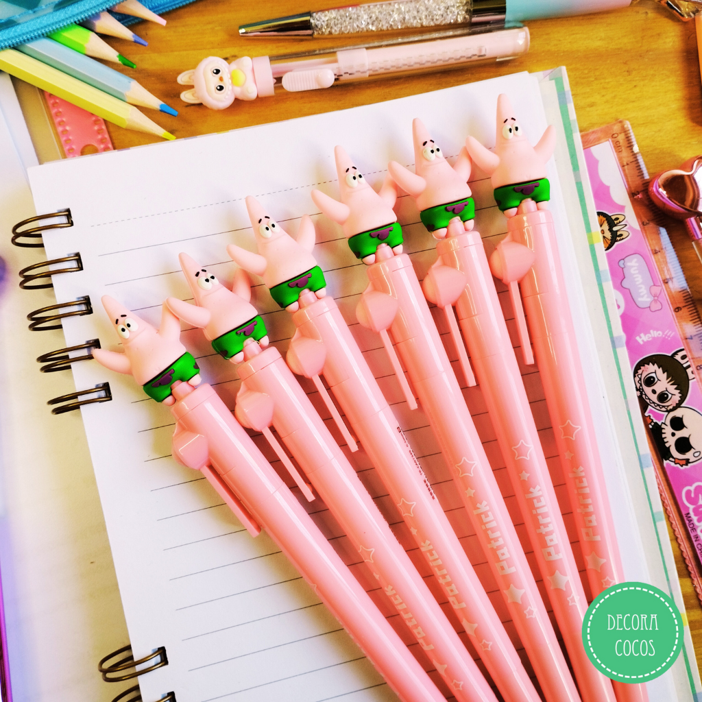 Bolígrafo Giratorio Diseño Patricio (Bob Esponja) Tinta negra - punta fina metal simil microfibra Precio por unidad - Se envía surtido de colores
