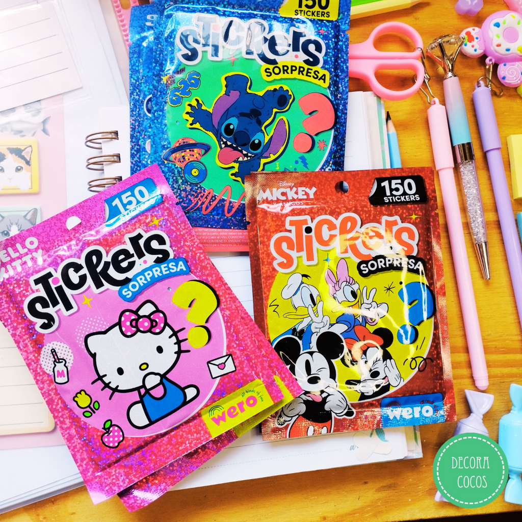 Set de stickers sorpresa Diseño - Kitty - Stitch - Mickey Incluye 150 stickers Precio por unidad - Se envía surtido según stock