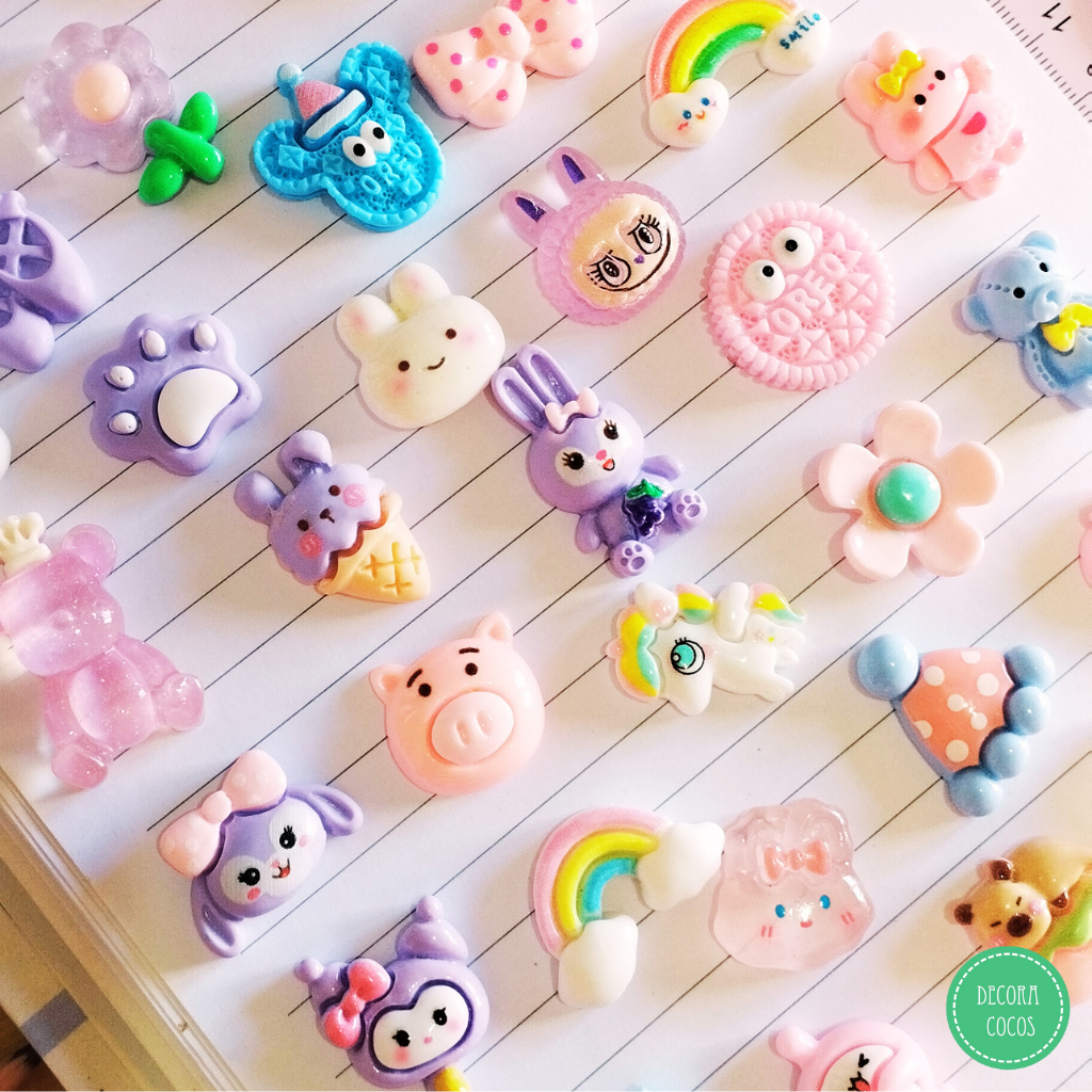 Set de Apliques de resina - Charms muchísimos modelos y colores Se envía surtido acorde stock - No se eligen modelos ( Pedidos x 100 y 1000 son con una semanita de demora)