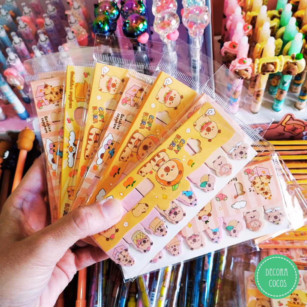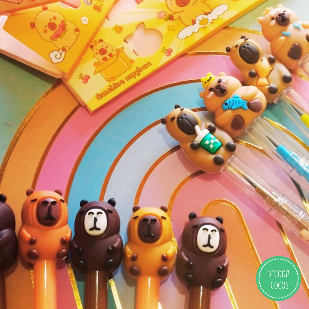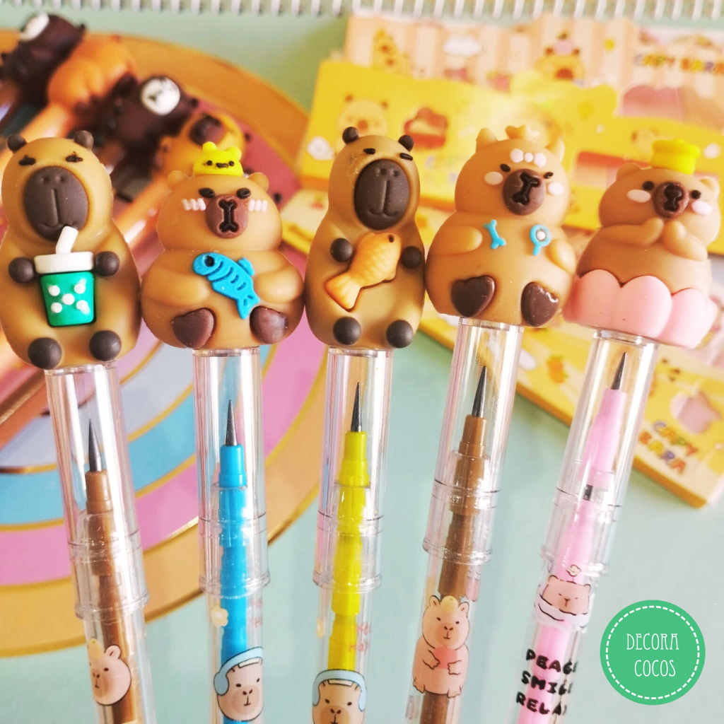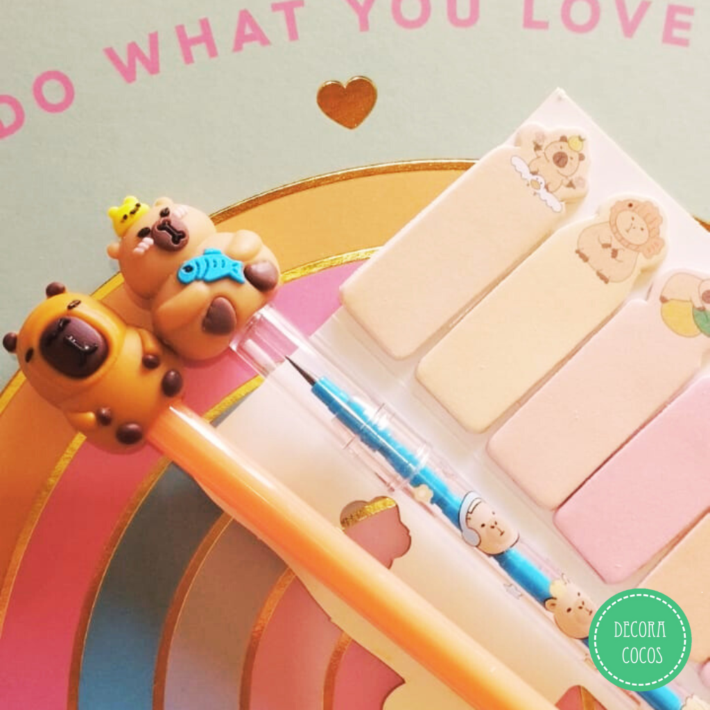 COMBO CAPIS 1 Lápiz con punta intercambiable Capibara + 1 Set de banderitas Capibara + 1 Bolígrafo Capibara (ideal para souvenir) Precio por combo - se envía surtido de colores