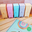 Tonos pasteles: lila - rosa - verde agua - celeste - naranjita- amarillo