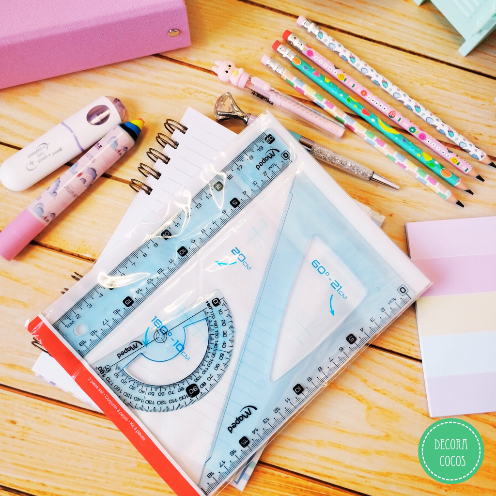 Regla de plástico + Transportador + Escuadra