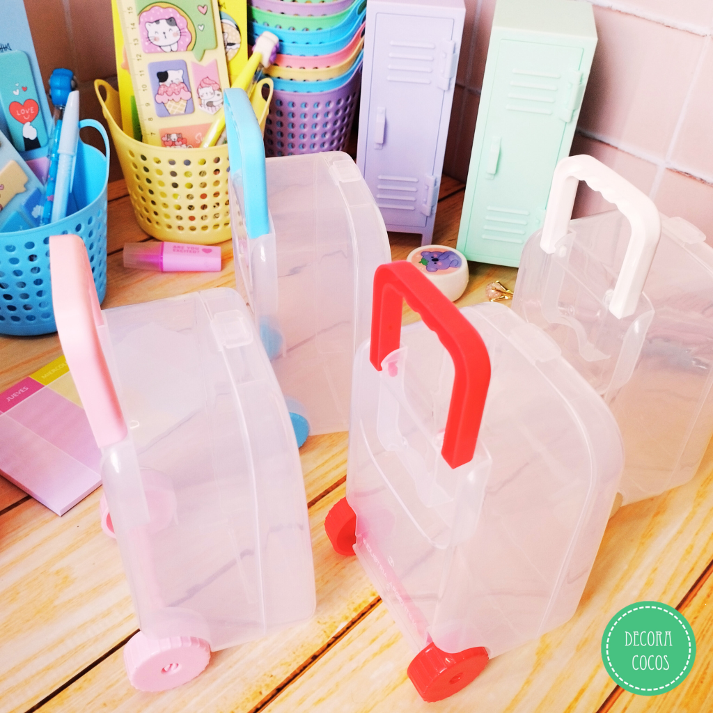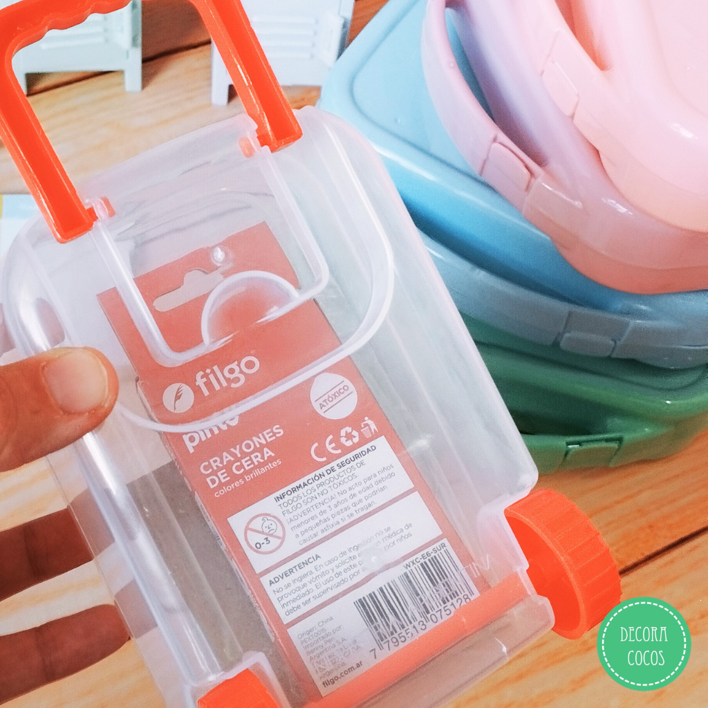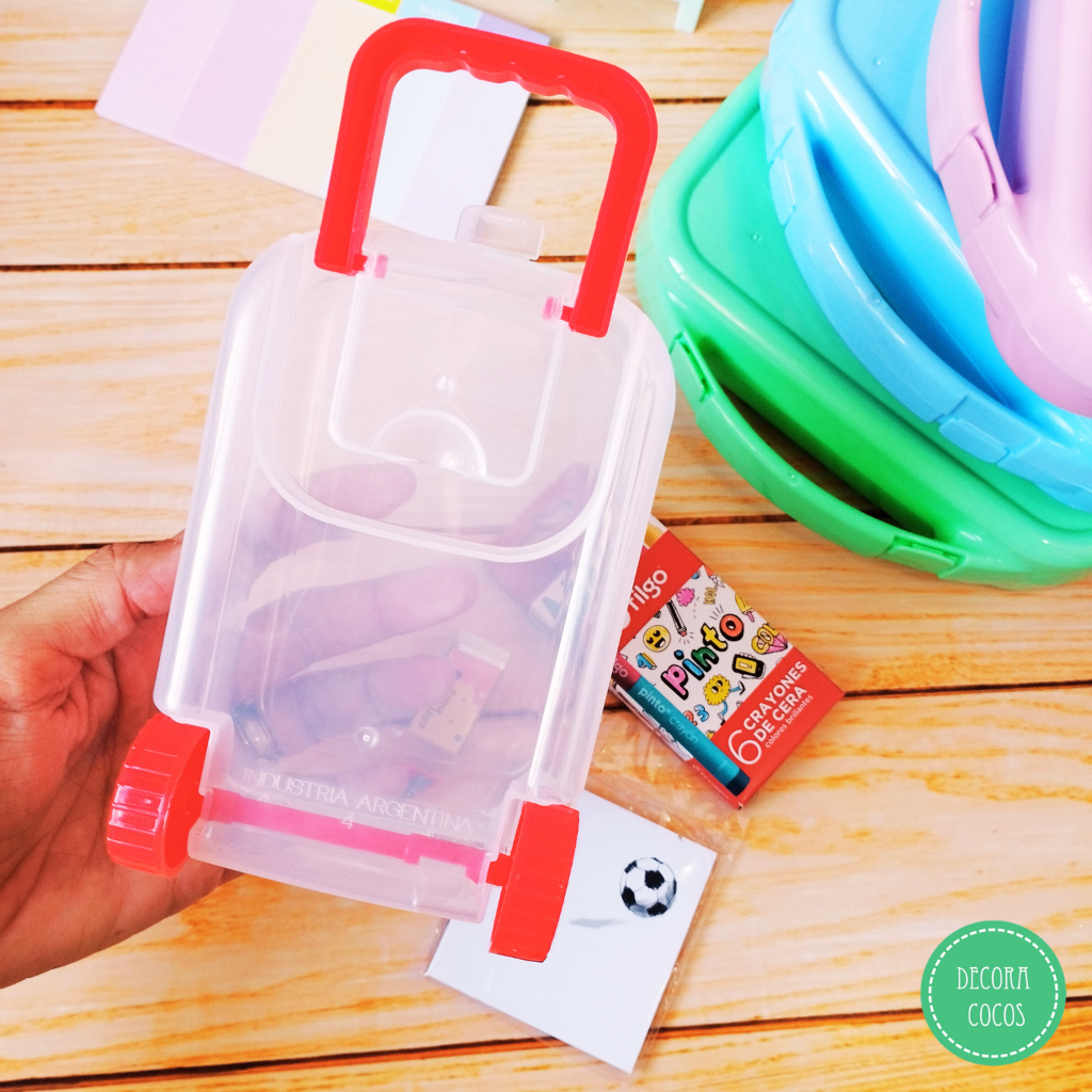 Valija Carry on en tonos Ideal para armar tus propios packs o souvenir - Sin personalizar Medida: 13 x 7,5 x 8,5 cm aprox Disponible en rojo - azul - rosa - celeste - amarillo Al finalizar el pedido indicarnos qué surtido de colores querés y si necesitás otra cantidad escribinos por whatsapp DEMORA 7 DÍAS (no incluye los útiles de la foto)