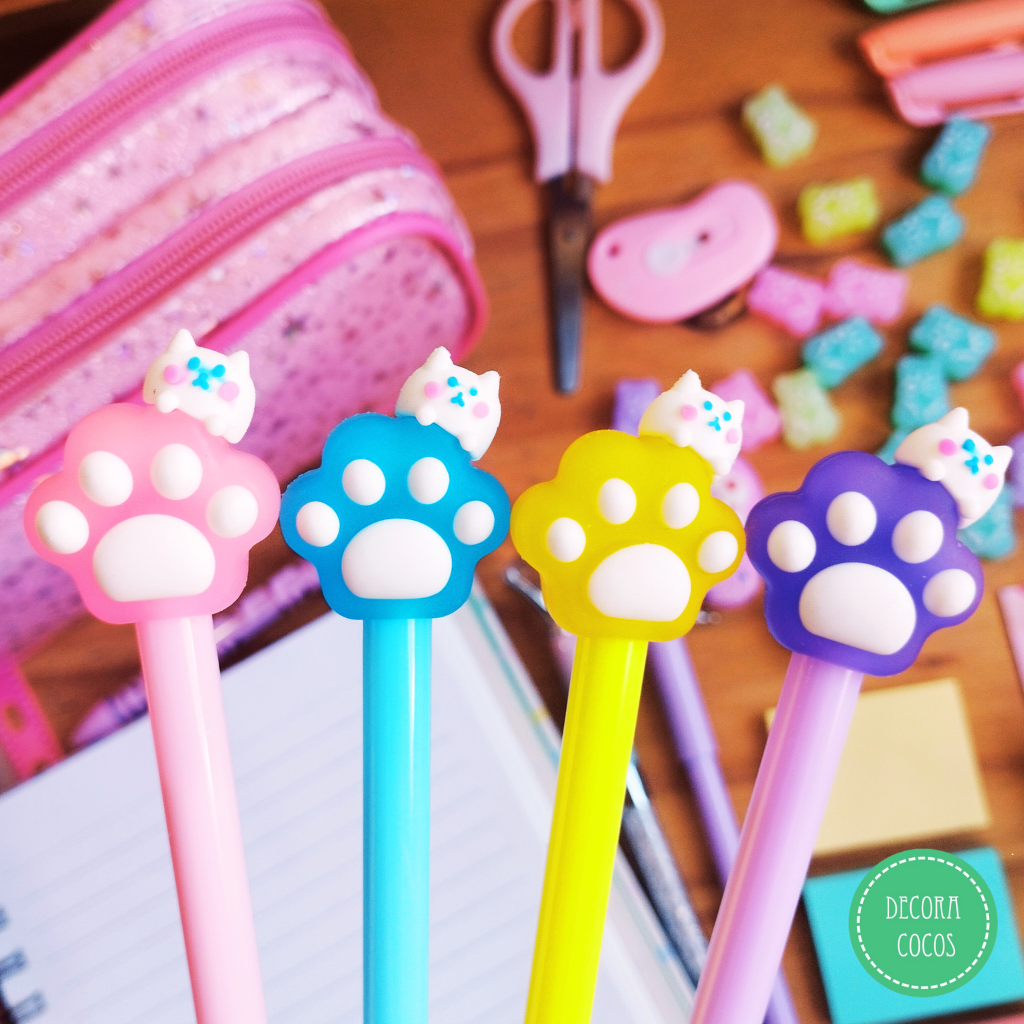 Bolígrafo Huella Gatito Punta 0.7 mm tinta azul - punta metal fina simil microfibra Precio por unidad - Se envía surtido de colores