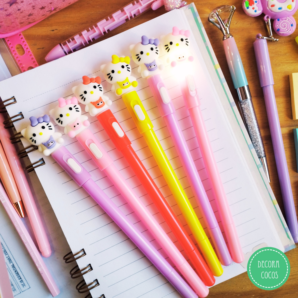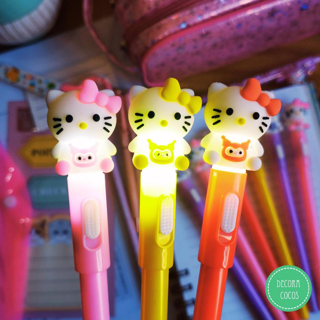 Bolígrafo Hello Kitty con luz led Punta 0.7mm tinta azul - punta metal fina simil microfibra Precio por unidad - Se envía surtido de colores