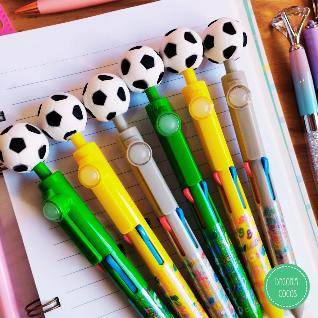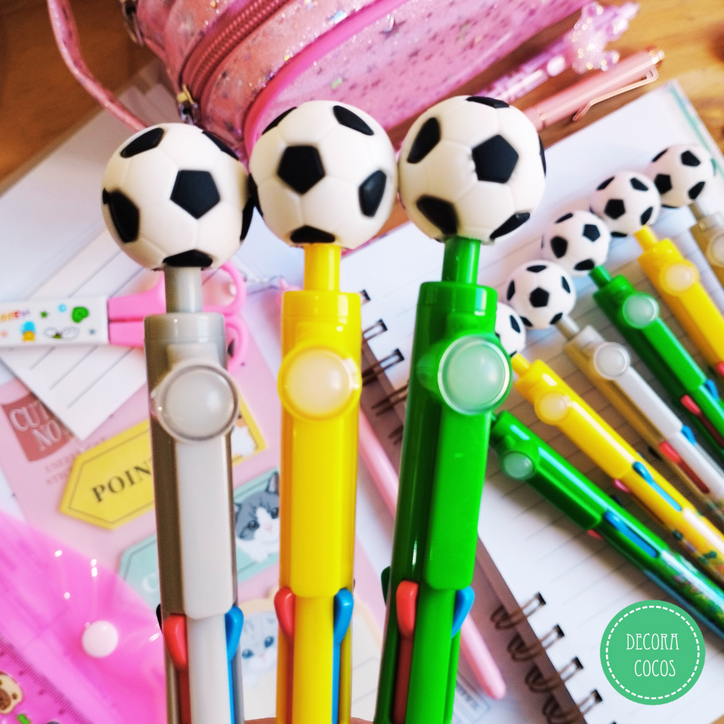 Bolígrafo Fútbol Giratorio La bolita blanca la moves y la pelota gira Tinta de 4 colores - punta tradicional Precio por unidad - Se envía surtido de colores