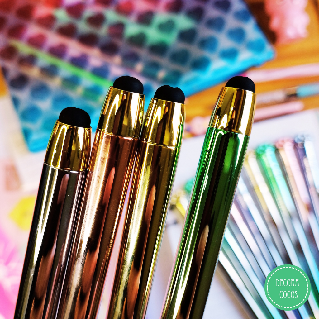 Bolígrafo Metalizado con diseño Huella Punta touch para celular Tinta azul - 1 mm Precio por unidad - Se envía surtido de colores