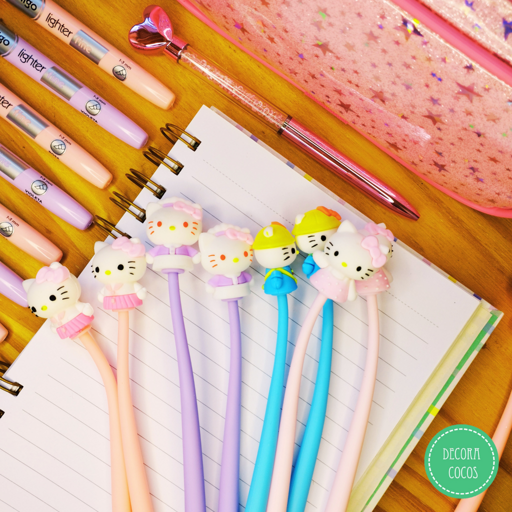 Bolígrafo Flex Diseño Hello Kitty Punta tinta negra - punta metal fina simil microfibra Precio por unidad - Se envía surtido de colores