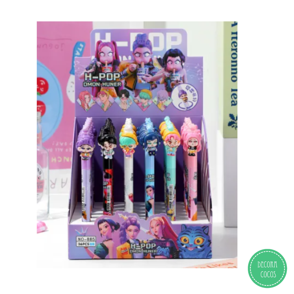 Bolígrafo H-POP Demon Hunter Punta fina trazo azul de secado rápido Agarre ergonómica Precio por unidad - Se envía surtido de colores