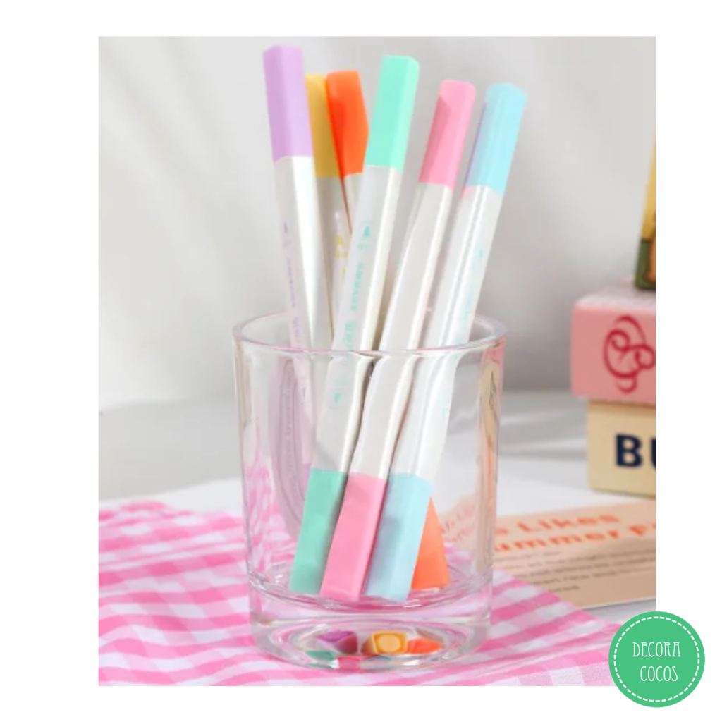 Resaltador Doble punta funcional y perfumado Punta fina para detalles + Punta ancha para áreas amplias Cada color tiene fragancia suave Precio por unidad - Se envía surtido según stock